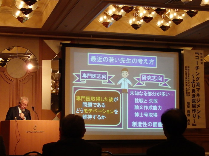 同門会特別講演では、和歌山県立医科大学名誉教授/畑埜クロスマネジメント代表である畑埜義雄先生にお越しいただき、「コーチング流マネジメント~より良き医局作り~」についてご講演頂きました。畑埜先生のお好きな言葉である「他人と過去は変えられない 自分と未来が変えられる」という言葉を拝聴し、今後ともより良い医局作りに邁進してまいりたいと思います。